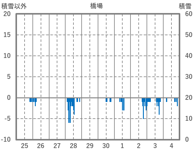 | 日 | 時 | 気温 | 降水 | 風向/風速 | 日照 | 積雪 | 降雪 |