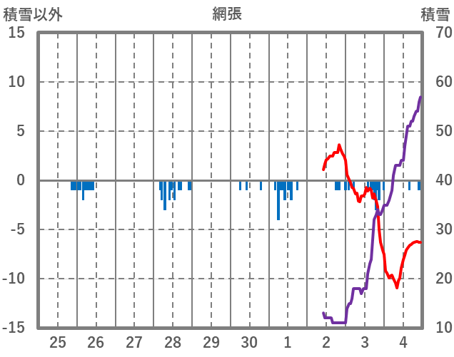 | 日 | 時 | 気温 | 降水 | 風向/風速 | 日照 | 積雪 | 降雪 |