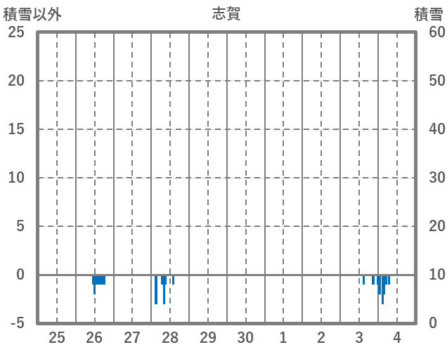 | 日 | 時 | 気温 | 降水 | 風向/風速 | 日照 | 積雪 | 降雪 |