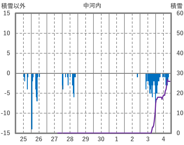 | 日 | 時 | 気温 | 降水 | 風向/風速 | 日照 | 積雪 | 降雪 |