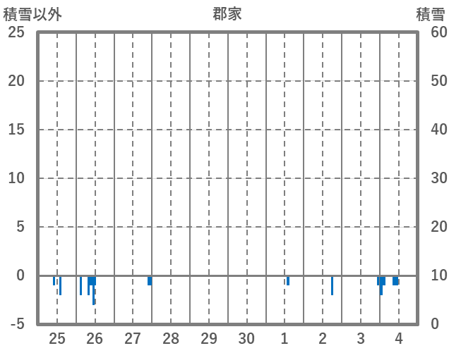 | 日 | 時 | 気温 | 降水 | 風向/風速 | 日照 | 積雪 | 降雪 |