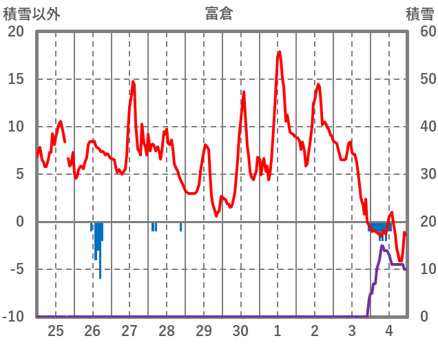 | 日 | 時 | 気温 | 降水 | 風向/風速 | 日照 | 積雪 | 降雪 |