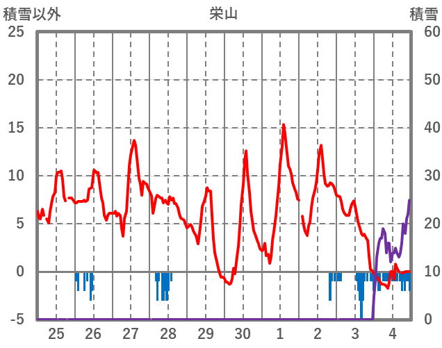 | 日 | 時 | 気温 | 降水 | 風向/風速 | 日照 | 積雪 | 降雪 |
