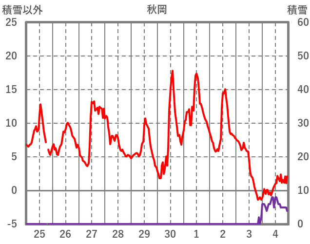 | 日 | 時 | 気温 | 降水 | 風向/風速 | 日照 | 積雪 | 降雪 |