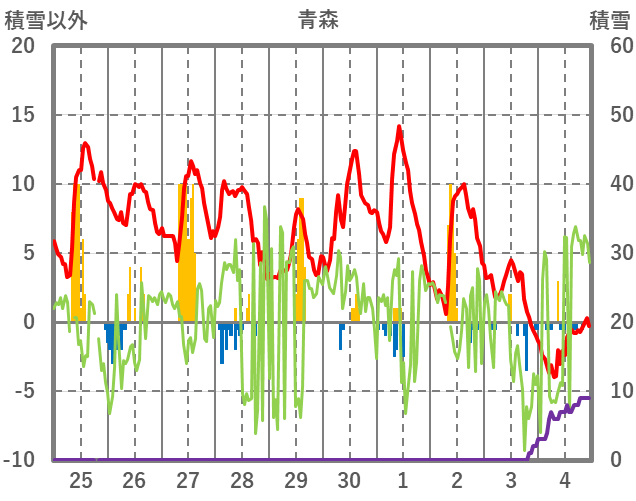 | 日 | 時 | 気温 | 降水 | 風向/風速 | 日照 | 積雪 | 降雪 |