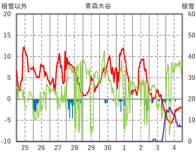 | 日 | 時 | 気温 | 降水 | 風向/風速 | 日照 | 積雪 | 降雪 |
