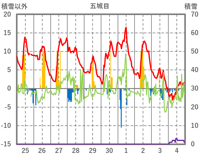 | 日 | 時 | 気温 | 降水 | 風向/風速 | 日照 | 積雪 | 降雪 |