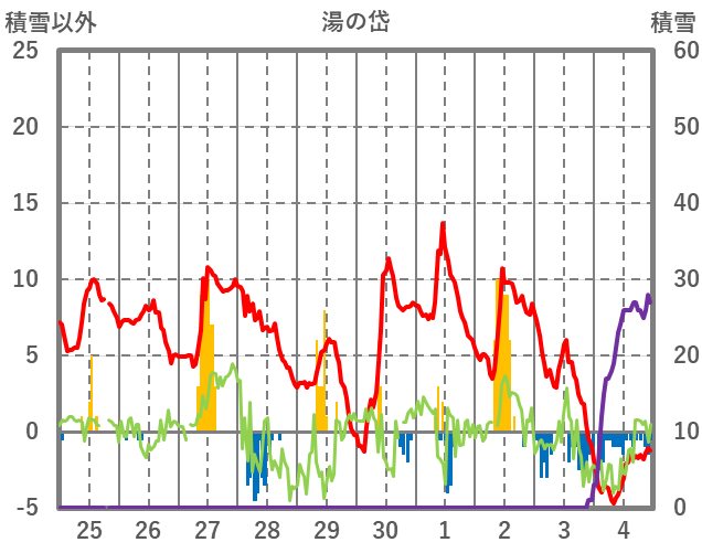 | 日 | 時 | 気温 | 降水 | 風向/風速 | 日照 | 積雪 | 降雪 |