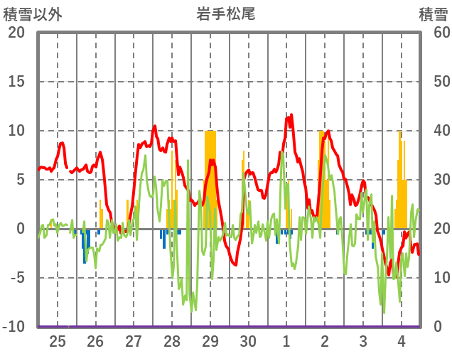 | 日 | 時 | 気温 | 降水 | 風向/風速 | 日照 | 積雪 | 降雪 |