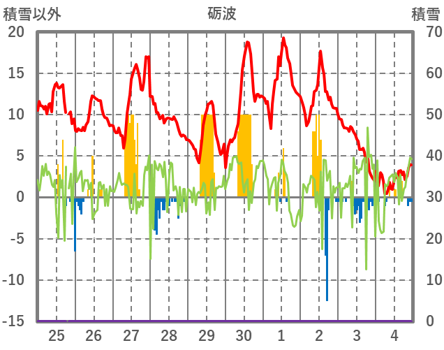 | 日 | 時 | 気温 | 降水 | 風向/風速 | 日照 | 積雪 | 降雪 |