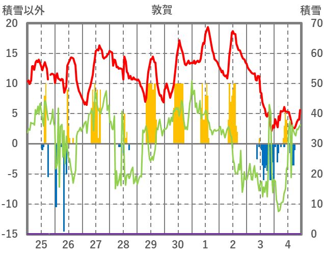 | 日 | 時 | 気温 | 降水 | 風向/風速 | 日照 | 積雪 | 降雪 |