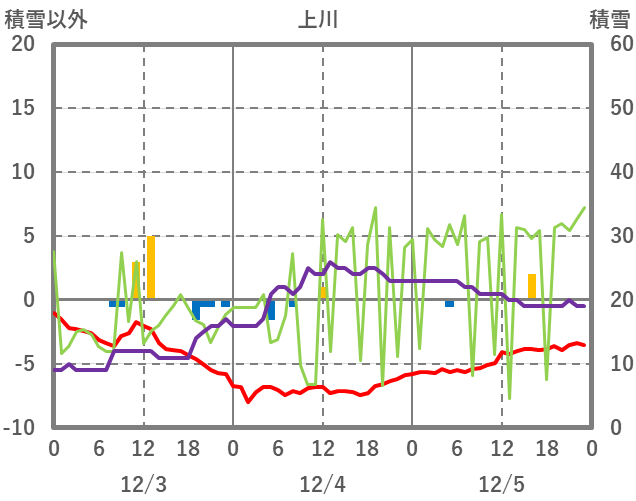 | 日 | 時 | 気温 | 降水 | 風向/風速 | 日照 | 積雪 | 降雪 |