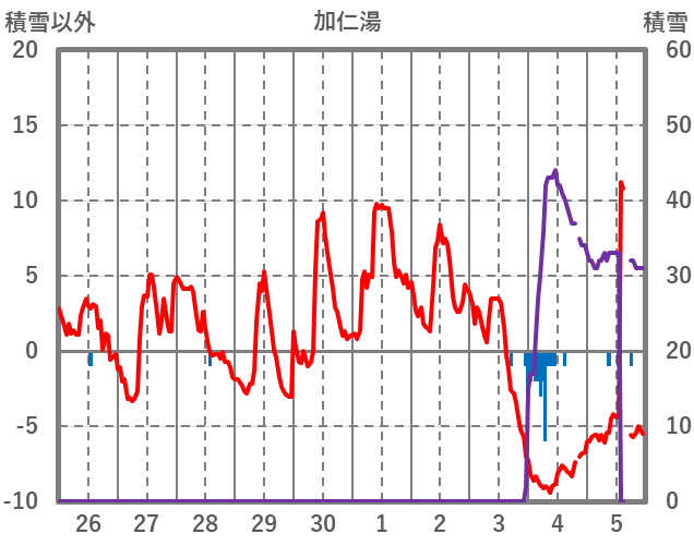 | 日 | 時 | 気温 | 降水 | 風向/風速 | 日照 | 積雪 | 降雪 |