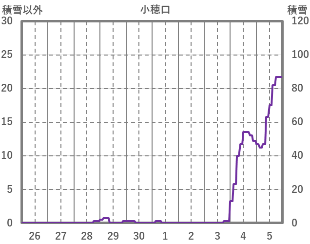 | 日 | 時 | 気温 | 降水 | 風向/風速 | 日照 | 積雪 | 降雪 |