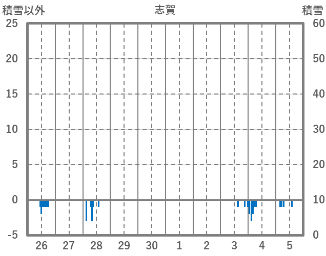 | 日 | 時 | 気温 | 降水 | 風向/風速 | 日照 | 積雪 | 降雪 |