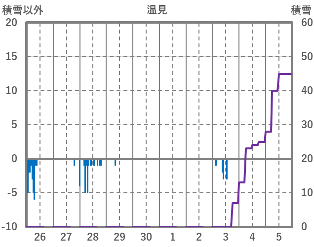 | 日 | 時 | 気温 | 降水 | 風向/風速 | 日照 | 積雪 | 降雪 |