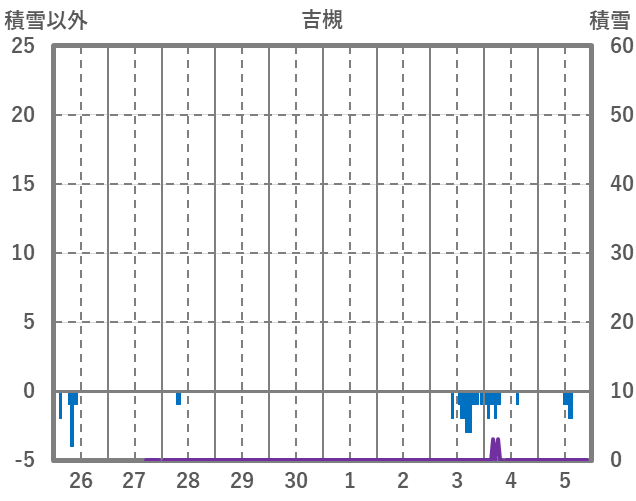 | 日 | 時 | 気温 | 降水 | 風向/風速 | 日照 | 積雪 | 降雪 |