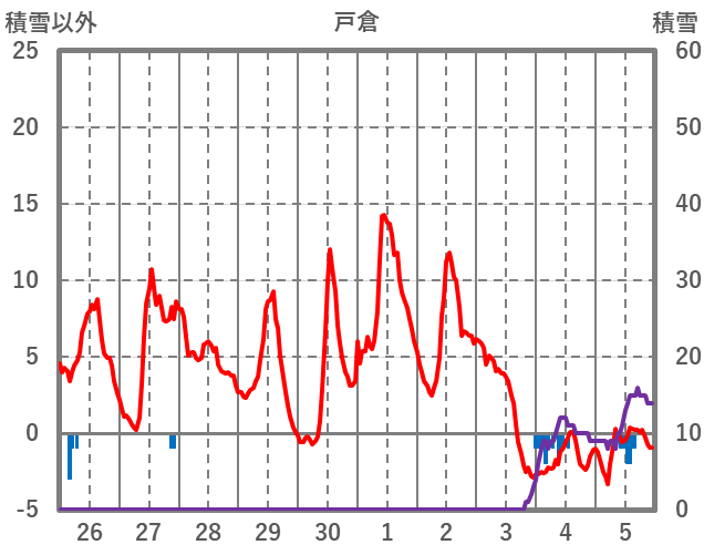 | 日 | 時 | 気温 | 降水 | 風向/風速 | 日照 | 積雪 | 降雪 |