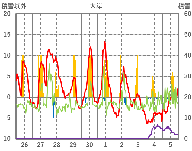 | 日 | 時 | 気温 | 降水 | 風向/風速 | 日照 | 積雪 | 降雪 |
