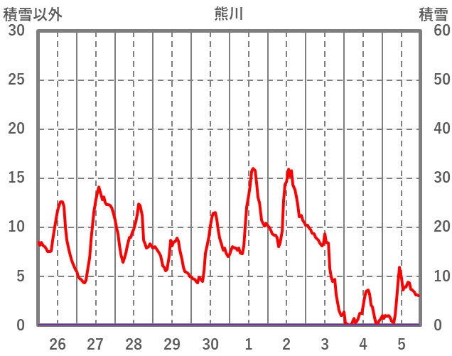 | 日 | 時 | 気温 | 降水 | 風向/風速 | 日照 | 積雪 | 降雪 |