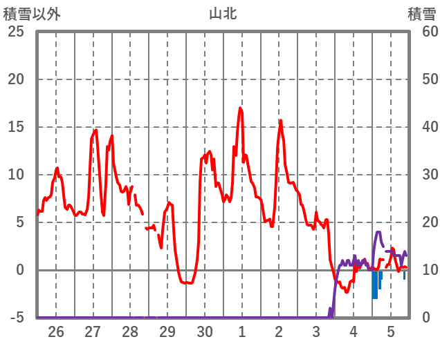 | 日 | 時 | 気温 | 降水 | 風向/風速 | 日照 | 積雪 | 降雪 |