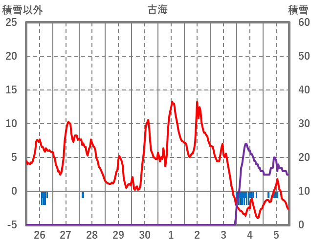 | 日 | 時 | 気温 | 降水 | 風向/風速 | 日照 | 積雪 | 降雪 |