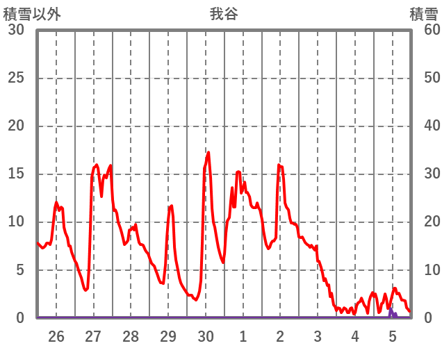 | 日 | 時 | 気温 | 降水 | 風向/風速 | 日照 | 積雪 | 降雪 |