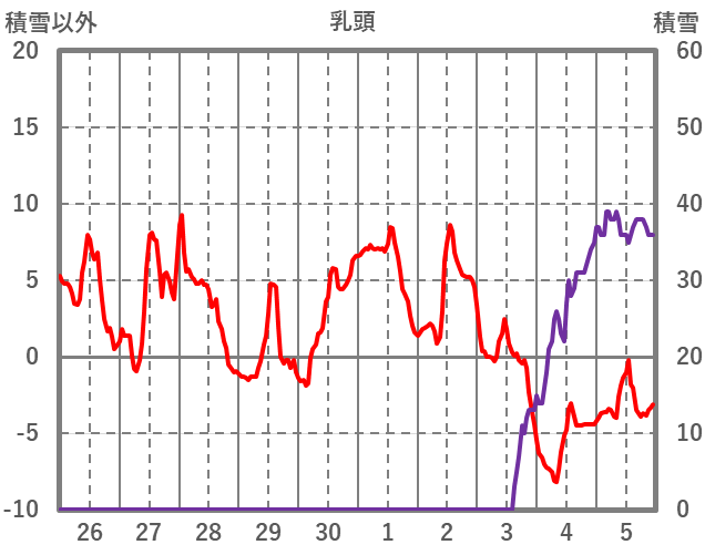 | 日 | 時 | 気温 | 降水 | 風向/風速 | 日照 | 積雪 | 降雪 |