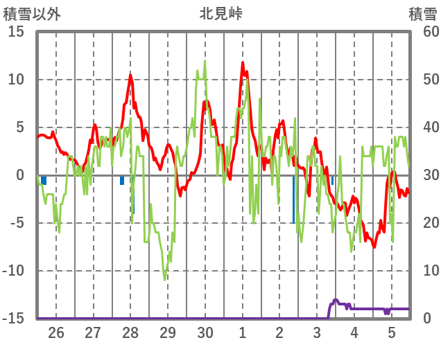 | 日 | 時 | 気温 | 降水 | 風向/風速 | 日照 | 積雪 | 降雪 |