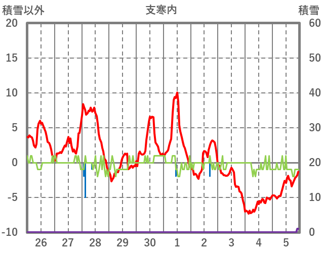 | 日 | 時 | 気温 | 降水 | 風向/風速 | 日照 | 積雪 | 降雪 |