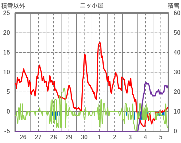 | 日 | 時 | 気温 | 降水 | 風向/風速 | 日照 | 積雪 | 降雪 |