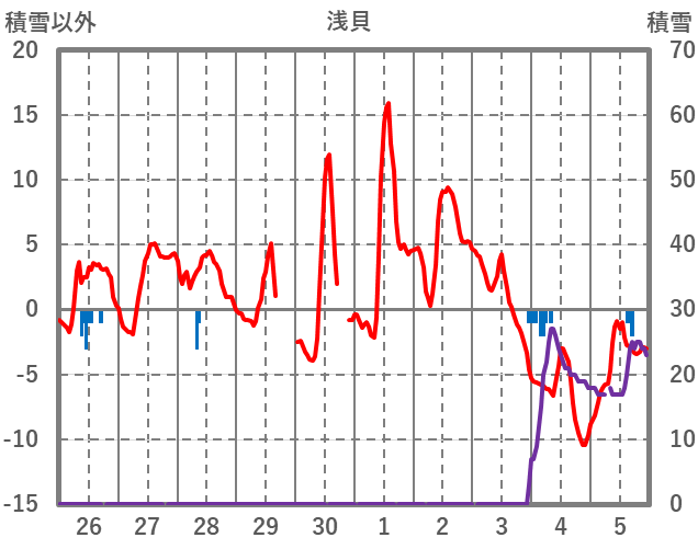 | 日 | 時 | 気温 | 降水 | 風向/風速 | 日照 | 積雪 | 降雪 |