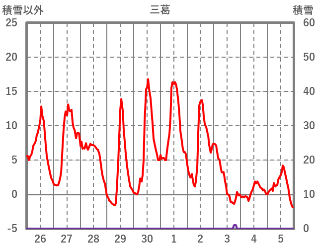 | 日 | 時 | 気温 | 降水 | 風向/風速 | 日照 | 積雪 | 降雪 |