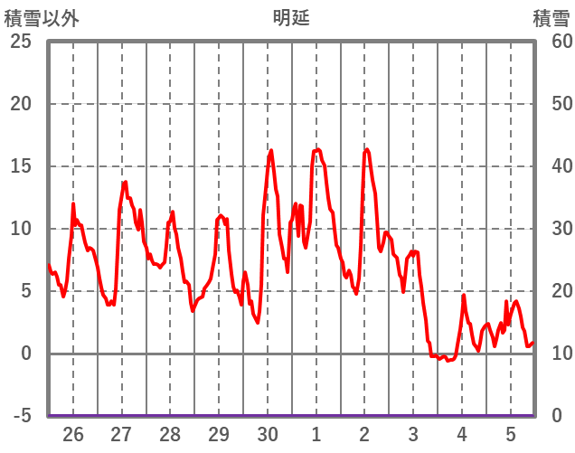 | 日 | 時 | 気温 | 降水 | 風向/風速 | 日照 | 積雪 | 降雪 |