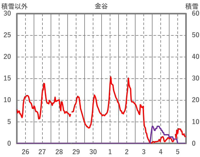 | 日 | 時 | 気温 | 降水 | 風向/風速 | 日照 | 積雪 | 降雪 |