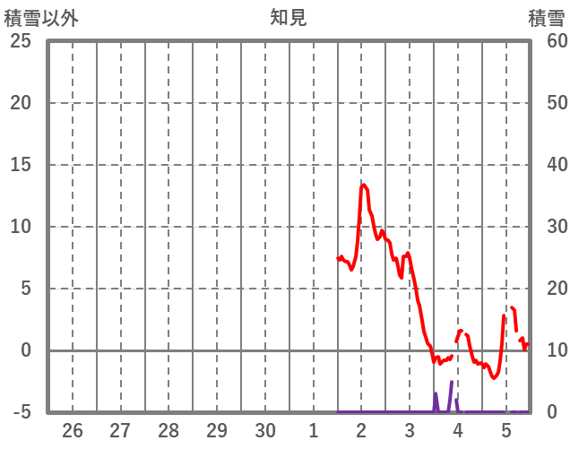 | 日 | 時 | 気温 | 降水 | 風向/風速 | 日照 | 積雪 | 降雪 |