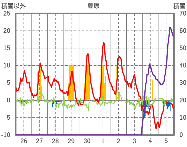 | 日 | 時 | 気温 | 降水 | 風向/風速 | 日照 | 積雪 | 降雪 |