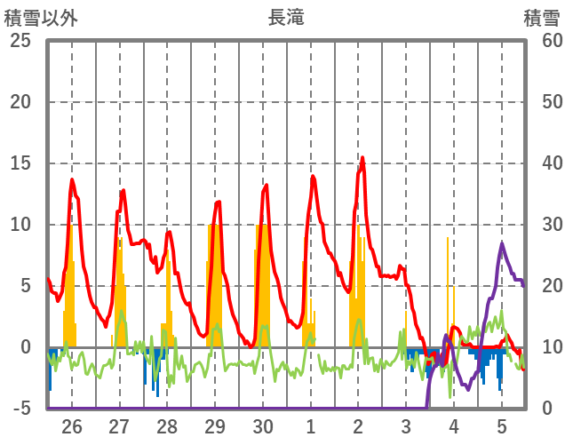 | 日 | 時 | 気温 | 降水 | 風向/風速 | 日照 | 積雪 | 降雪 |