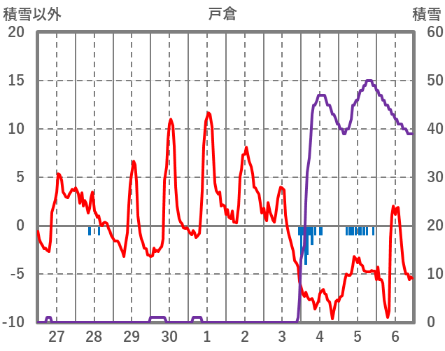 | 日 | 時 | 気温 | 降水 | 風向/風速 | 日照 | 積雪 | 降雪 |
