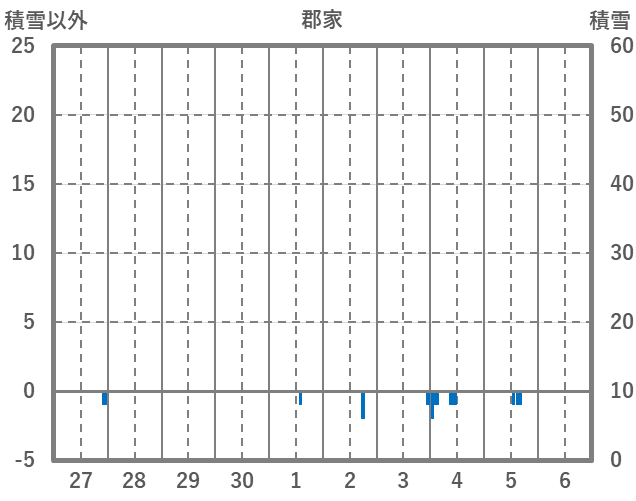| 日 | 時 | 気温 | 降水 | 風向/風速 | 日照 | 積雪 | 降雪 |