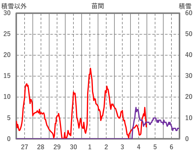 | 日 | 時 | 気温 | 降水 | 風向/風速 | 日照 | 積雪 | 降雪 |