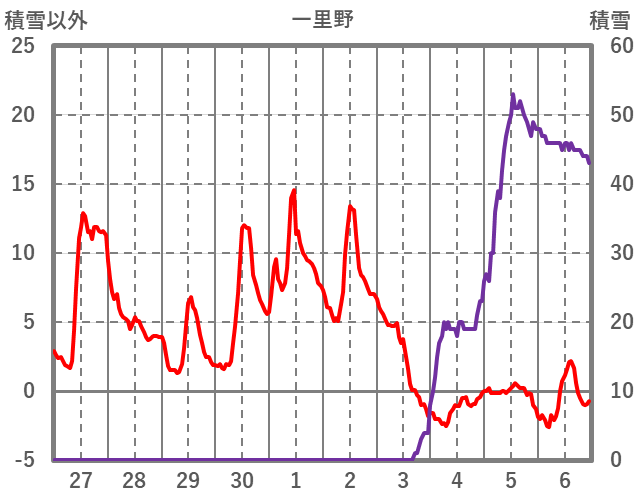 | 日 | 時 | 気温 | 降水 | 風向/風速 | 日照 | 積雪 | 降雪 |