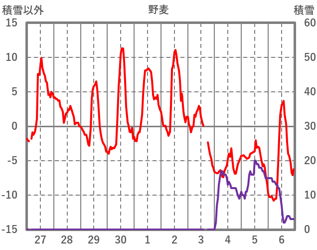 | 日 | 時 | 気温 | 降水 | 風向/風速 | 日照 | 積雪 | 降雪 |