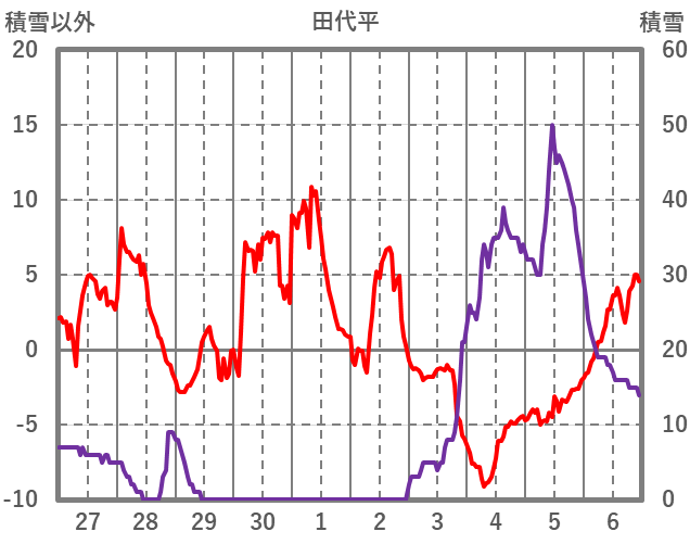 | 日 | 時 | 気温 | 降水 | 風向/風速 | 日照 | 積雪 | 降雪 |