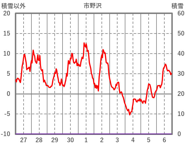 | 日 | 時 | 気温 | 降水 | 風向/風速 | 日照 | 積雪 | 降雪 |