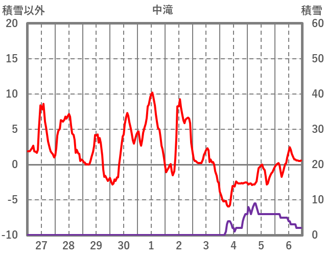| 日 | 時 | 気温 | 降水 | 風向/風速 | 日照 | 積雪 | 降雪 |