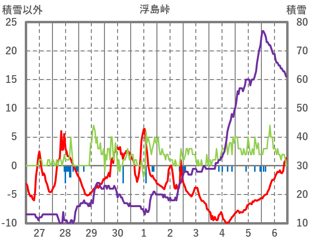 | 日 | 時 | 気温 | 降水 | 風向/風速 | 日照 | 積雪 | 降雪 |