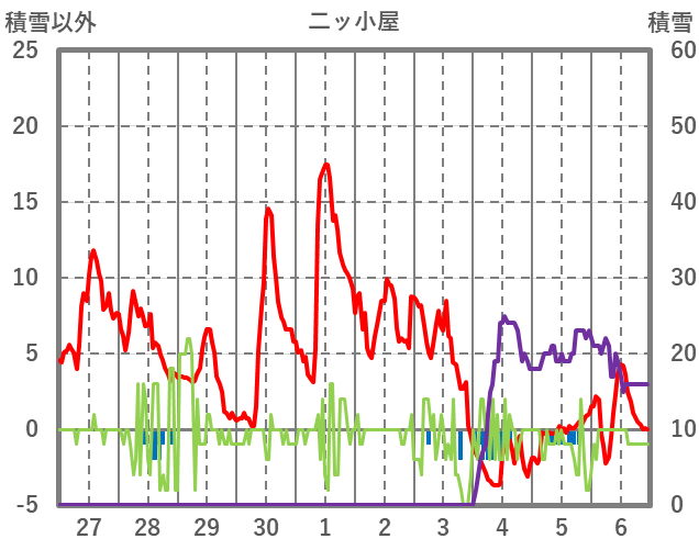 | 日 | 時 | 気温 | 降水 | 風向/風速 | 日照 | 積雪 | 降雪 |