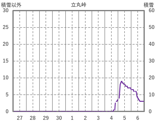| 日 | 時 | 気温 | 降水 | 風向/風速 | 日照 | 積雪 | 降雪 |