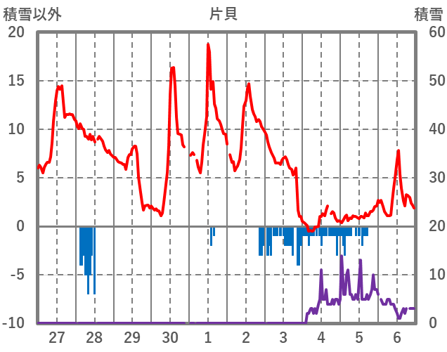 | 日 | 時 | 気温 | 降水 | 風向/風速 | 日照 | 積雪 | 降雪 |